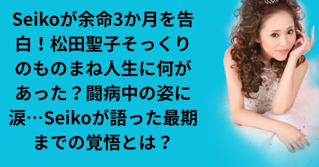 Seikoが余命3か月を告白!松田聖子そっくりのものまね人生に何があった?闘病中の姿に涙…Seikoが語った最期までの覚悟とは?